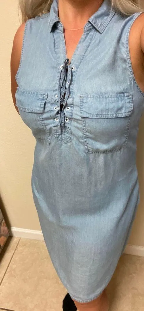 Women's Light Wash Denim Shirt Dress. Great condition. Lightweight, washes well, and versatile. T... Show more
