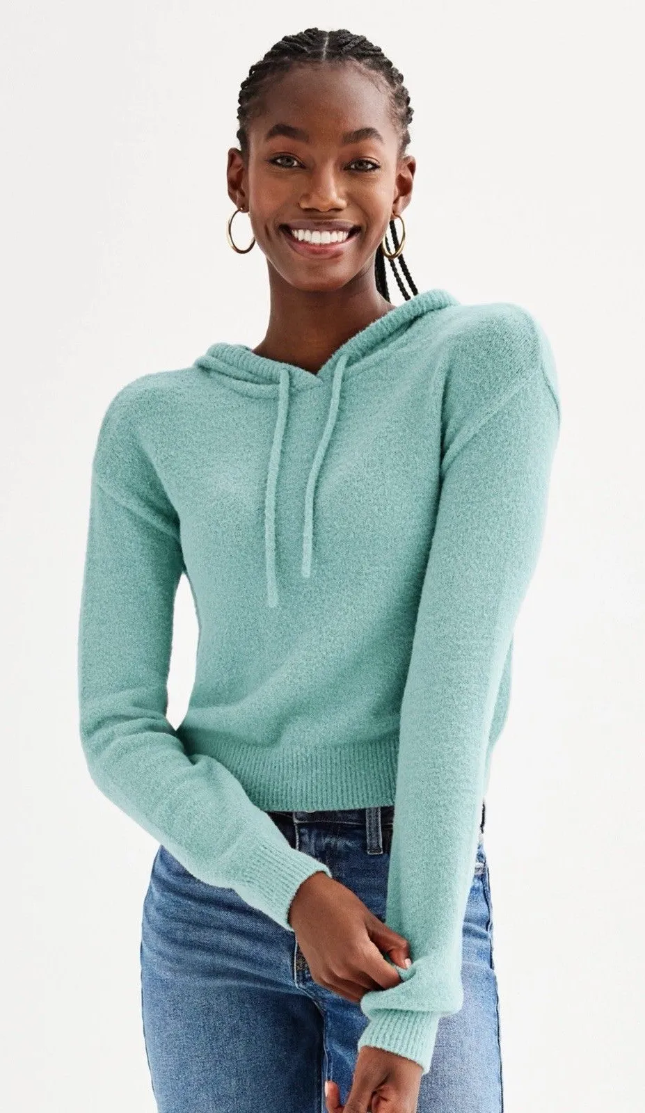 FEATURES Boatneck Hood with drawstrings Drop-shoulder long sleeves Banded hem Ribbed cuffs Unl... Show more