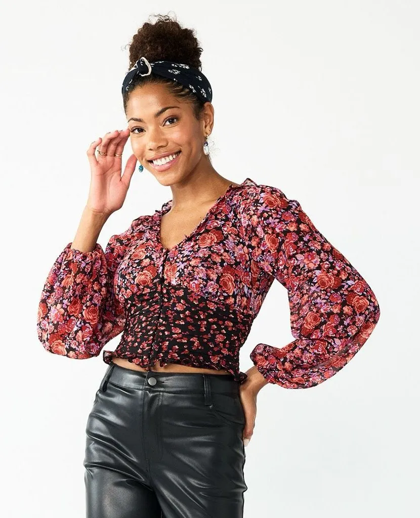 SO Mixed Print Floral Corset Long Sleeve Juniors Blouse Chiffon Size S - $15 - From T