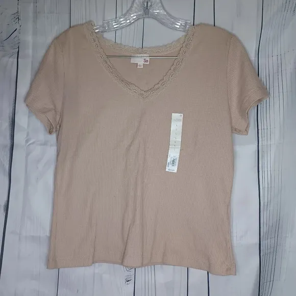 SO ribbed cropped juniors short sleeve top NWT Size L Pit to pit 18 length 29 my info 429