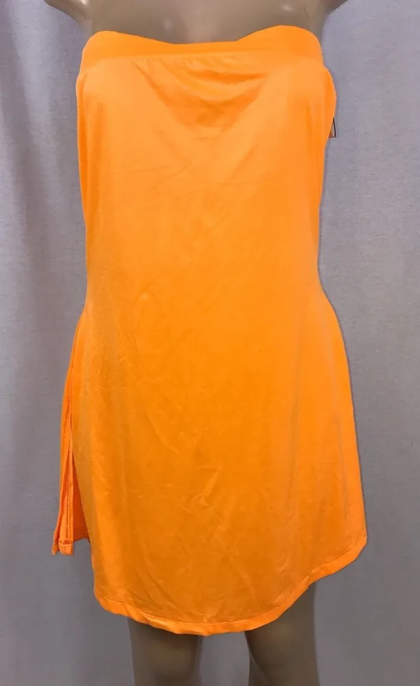 So Sexy Vintage Deadstock Mini Dress. This is a sexy strapless bright orange mini spandex dress with side slits. Has small spots as shown that may come off with Wash and Wash treatment Exclusive So Sexy Dress so hot and sexy mini cover up dress this is a unique one of a kind dress or can be worn as a top Made in USA. 🇺🇸 Fits Large also #zuliana #swimsuit #orangeminidress #minidress #exoticwear A123