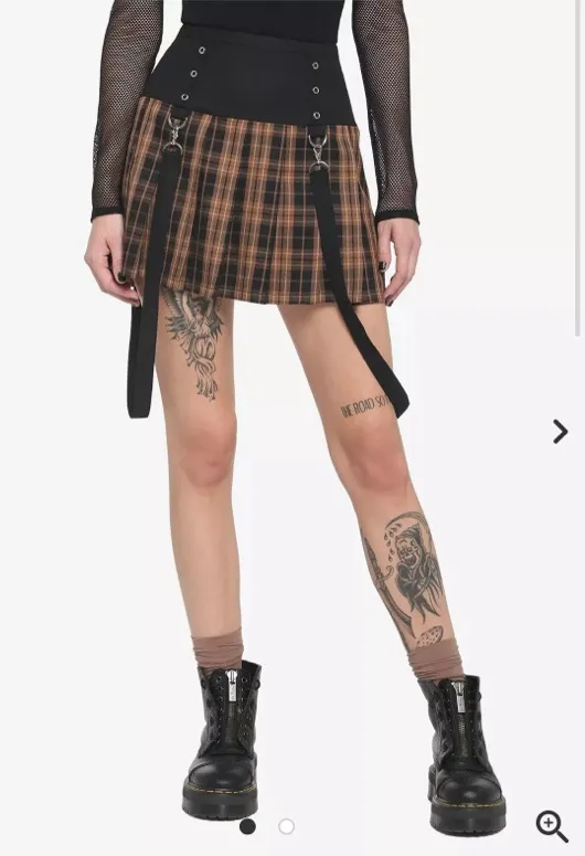 Brown Plaid Pleated Suspender Skirt Mix up your daily skirt rotation with this brown plaid style.... Show more