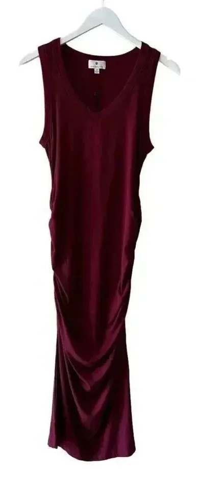 Socialite Burgundy Maroon Ruched Bodycon Casual Sleeveless Ribbed Knit Soft V-Neck Solid Color Maxi... Show more