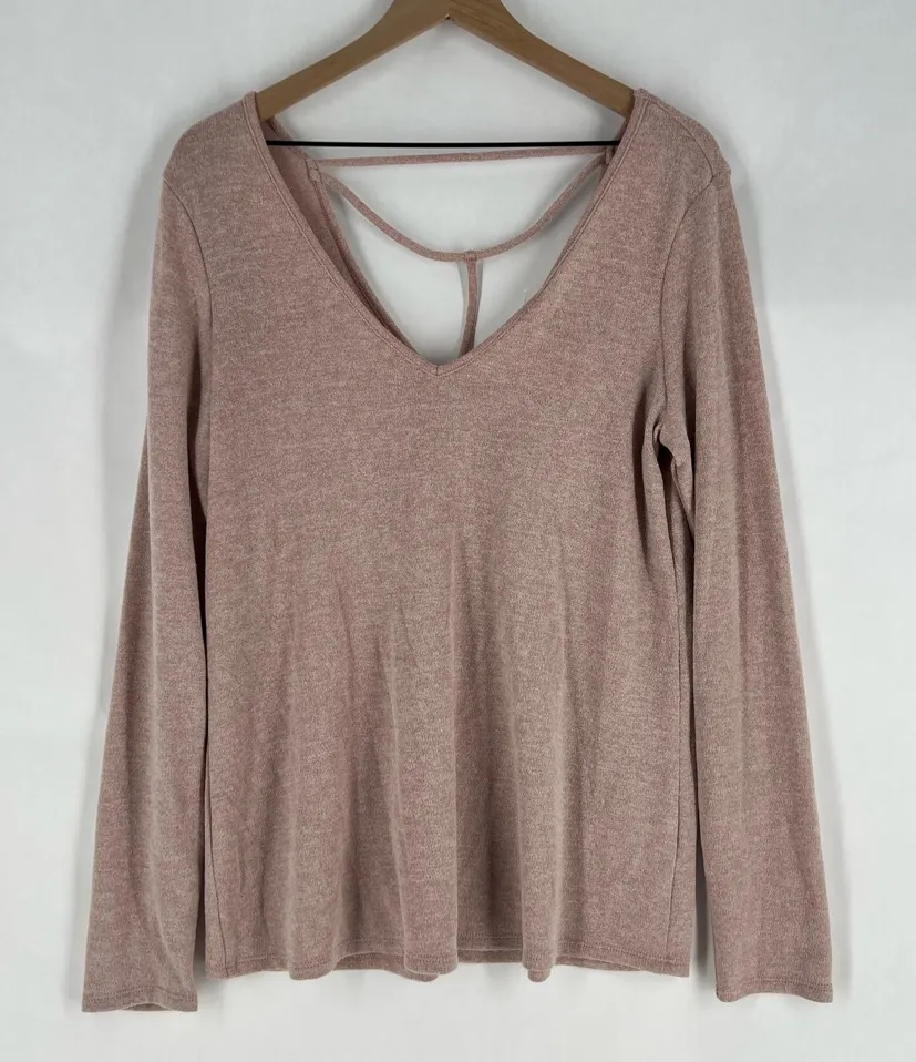 Socialite Women's Neutral Pink V-Neck Long Sleeve V-Neck Knit Sweater Top Size L Elevate your war... Show more