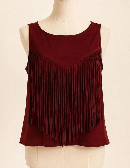Socialite XS Wine Faux Suede Fringe Tank Top – Boho Western Festival Cute and boho-chic Socialite f... Show more