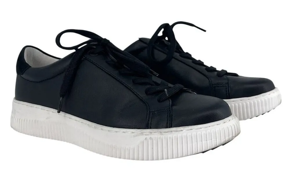 Söfft Fianna Black Leather Sneakers in a size 8.5 - great preloved condition with some minor wear (scuffs, marks here and there). Easily wiped down! Effortlessly cool in every way – the perfect sneaker to level up your casual looks. In luxe mixed leathers, our Fianna statement sneaker brings you comfort you’ll enjoy right out of the box, too! Details Italian suede accents Padded heel collar Leather lining Leather-lined footbed, cushioned for extra comfort with arch support Lightweight, flexible TPR outsole Heel Height: 1 1/2 inches Tags: Söfft Fianna sneakers, black leather platform sneakers, women’s Söfft 8.5M, lace-up comfort shoes, Söfft black leather shoes, platform walking sneakers, leather fashion sneakers, travel shoes for women, supportive black sneakers