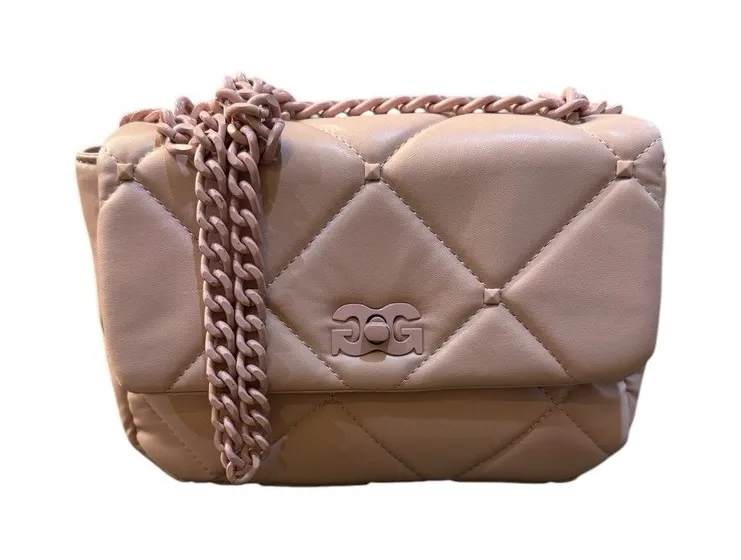 Elevate your style with this chic Gilda Paris handbag in a beautiful blush color. The faux leather exterior features a quilted finish and metal chain straps for a touch of elegance. This medium-sized bag measures 9 inches in width and 7 inches in height, making it perfect for everyday use. The interior is lined with polyester and includes inner pockets to keep your essentials organized. The clasp closure ensures your belongings stay secure, while the solid pattern and rectangle shape exude sophistication. Whether you're heading to the office, traveling, or going out for a cocktail, this versatile handbag is the perfect accessory for any occasion. 22212