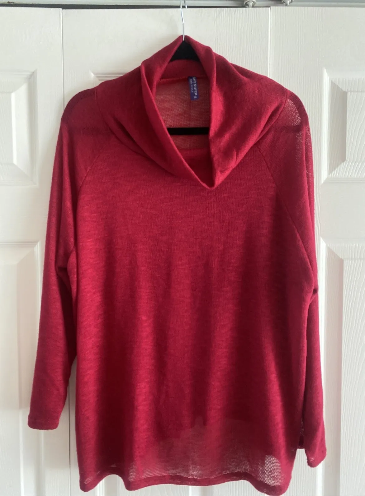 Soft Stitch Womens 2X Red Knit Soft Sweater USA Cowl Neck Lightweight Cabin Cozy Size XXL - $34 - From Arielle