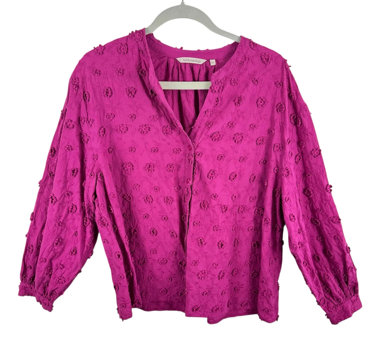 Excellent preowned condition. Soft Surroundings Pink Sunny Day Floral Applique Embroidered Button Up Blouse. 100% cotton material. Approx. measurements: Shoulder to hem 25", pit to pit 24", sleeve from neck to sleeve hem 29". Size 1X. About Treasures4Bristol: *Smoke free/pet free home *Offers welcome! *New items added daily *Bundles welcome! Save on shipping! *Fast shipping *All items shipped in clear sealed bags within outer packaging to protect from moisture. *Note that items may have some wrinkling develop during transportation. *Please feel free to ask any questions you may have, I’m more than happy to answer! *A portion of every sale is donated to Bo’s Heavenly Clubhouse, an organization that supports families in Wisconsin who have lost a child. I lost my beautiful 4-year old daughter Bristol in October 2022. I started this business in honor of her!