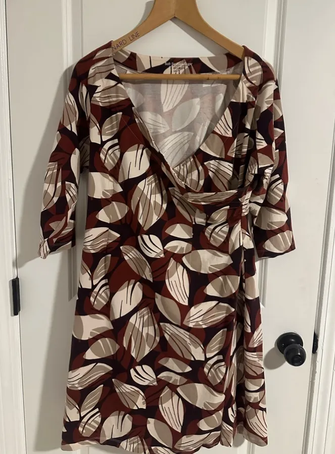 Soft Surroundings 3/4 sleeves faux wrap dress sz petite XL fall comfort mature Brown - $25 - From Janna