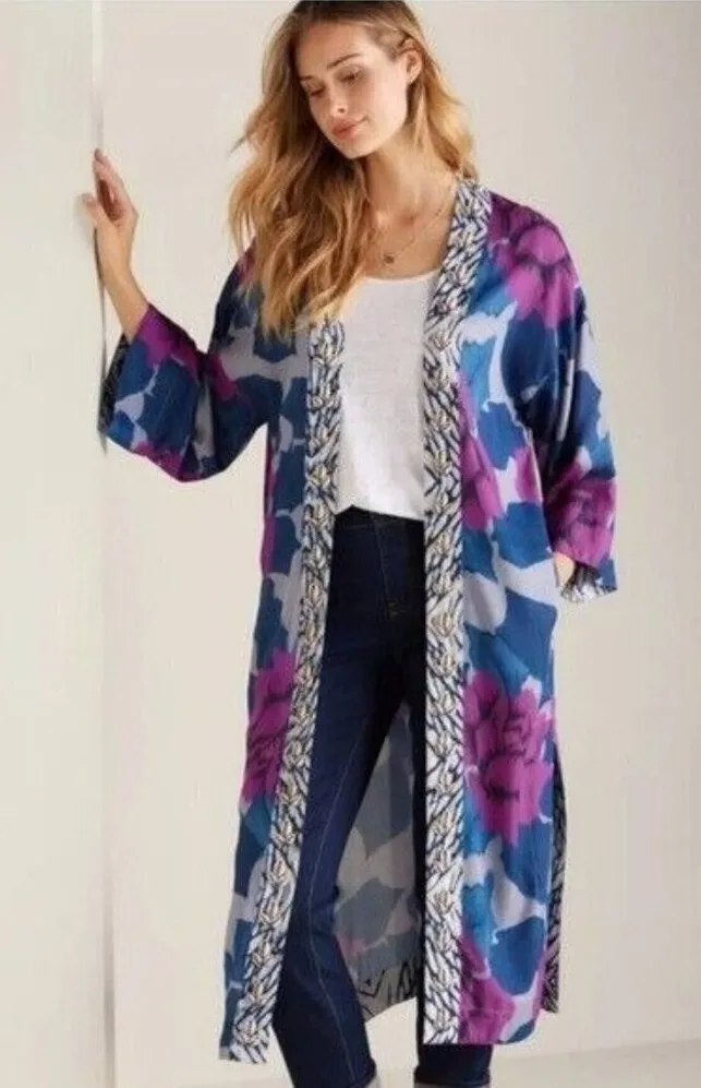 •BRAND: Soft Surroundings •COLOR: Multi Abstract •STYLE: Artika Topper •MATERIAL: See Pic •SIZE: L/XL •APPROXIMATE MEASUREMENTS: Arm Pit to Arm Pit- 24.5” Length- 46” •CONDITION: NEW WITH TAGS $130 •ADDITIONAL INFORMATION: Open front, 15.5” side slits, cowrie shell with beads detail, some beads are missing (extra shells and beads included), side pockets **** PLEASE NOTE MEASUREMENTS ARE PROVIDED AS APPROXIMATE ONLY. I AM NOT A PROFESSIONAL SEAMSTRESS AND BY NO MEANS SHOULD THEY BE TAKEN AS 100% ACCURATE. RETURNS ARE NOT ACCEPTED BASED SOLELY ON MY APPROXIMATE MEASUREMENTS.