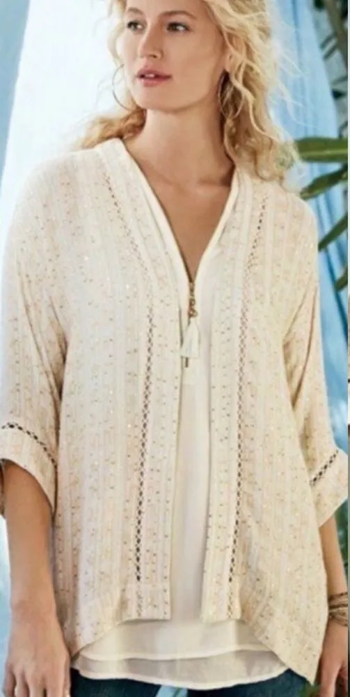 Soft surroundings ivory & gold sequin topper kimono 3/4‎ sleeves plus size 1x - $28 - From Alexandra