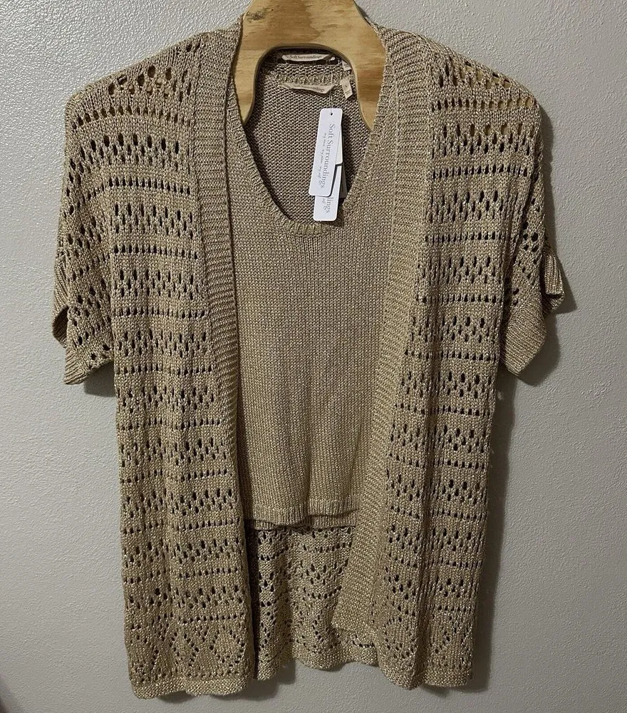 Soft Surroundings Opaline Shimmer Cardigan & Sweater Tank Top Sz‎ Large 2 Piece Tan - $59 New With Tags - From HannahBThrifts