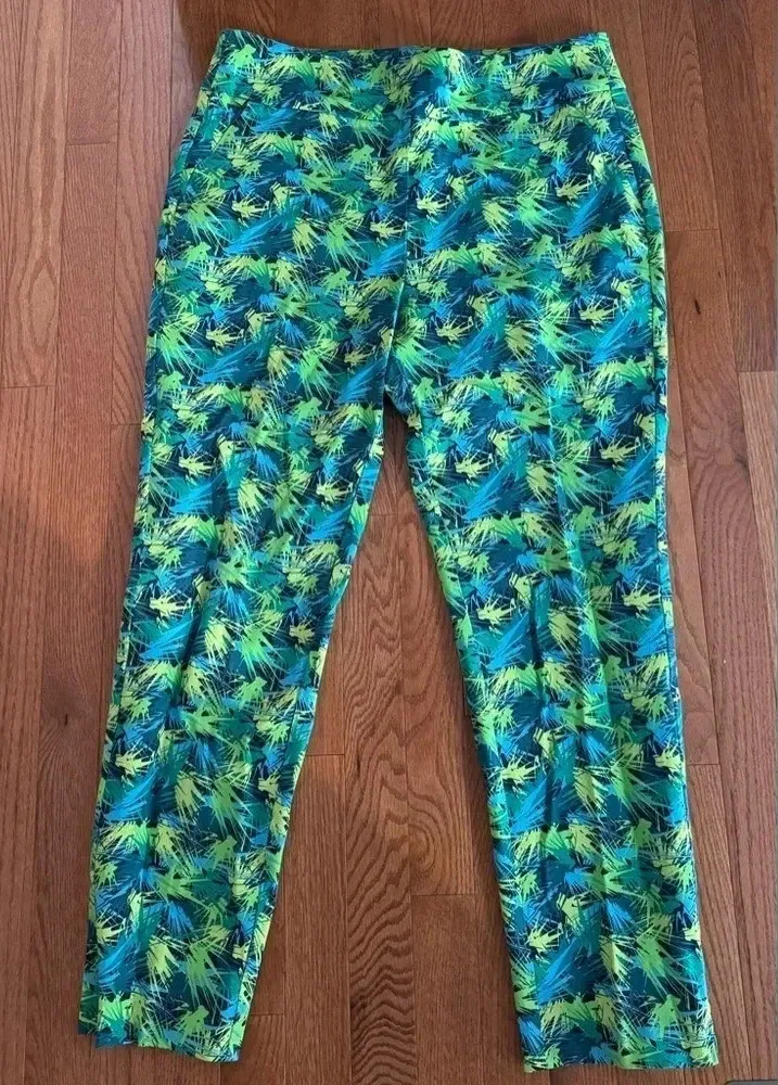 Soft Surroundings Skinny leg Ankle Length pants Green Floral and black Womens size Large Pull on Pa... Show more