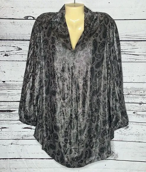 Soft Surroundings Size M Paisley Print - Silver Metallic Stripe Tunic Blouse Top Gray Size M - $26 - From Gabrielle