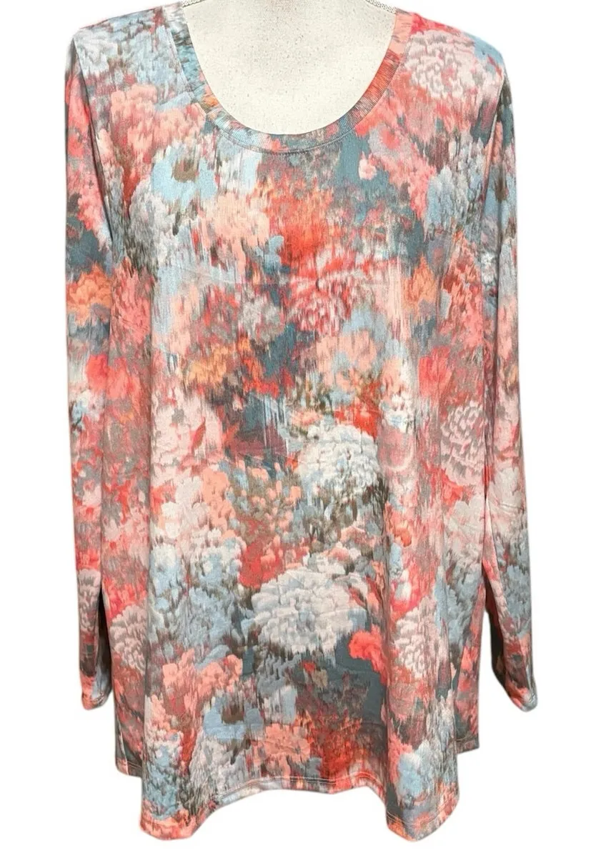 Soft Surroundings Size XL Long Sleeve Tee T Shirt Top Watercolor Floral Abstract Blue - $33 - From Stacie
