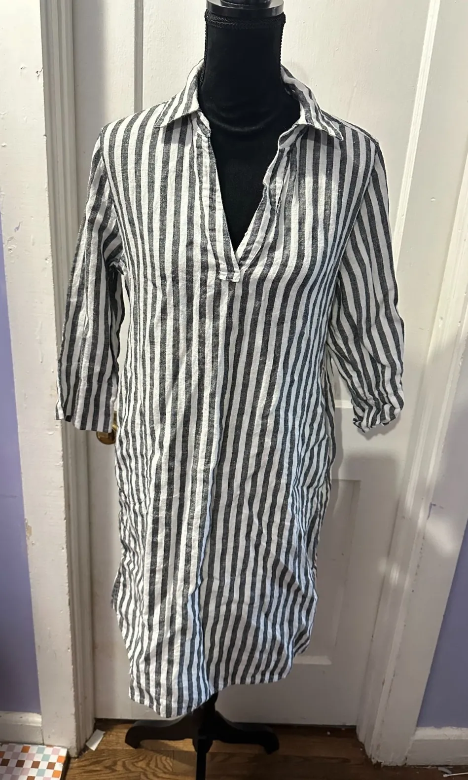 The Soft Surroundings 100% Linen White and Grey Striped Long Sleeve Dress in size M is a stylish and... Show more