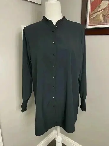 Soft Surroundings The Vivian Shirt Black long button down piecrust collar PLarge Size undefined - $22 - From Bri