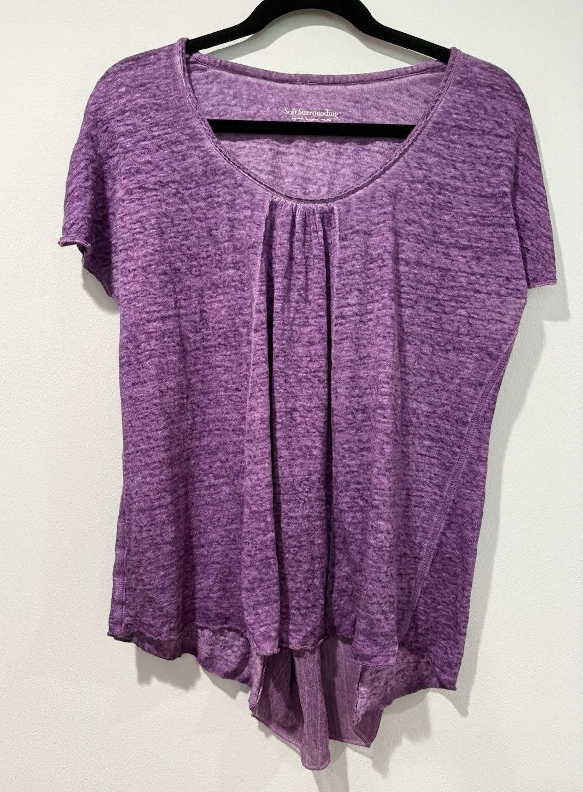 · Size Medium · Materials 100% Linen Measurements (Approx.) · Underarm to Underarm: 19 inches · Length from shoulder to hem: 24 inches (front), 27 inches (back) Condition: Preowned, Very Good- no stains/holes (see photos)