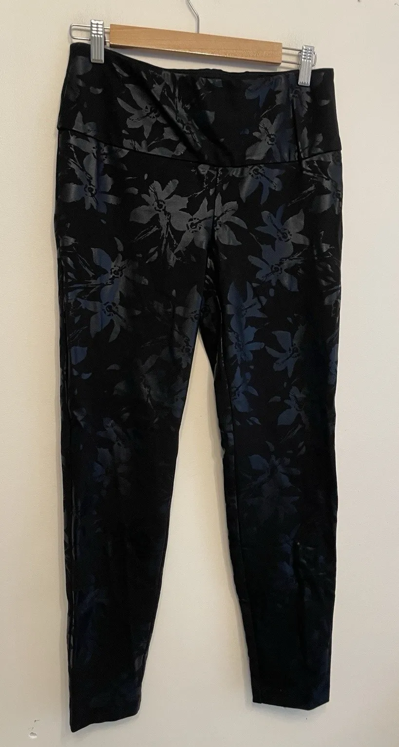 Soft Surroundings Stretch Black Metallic Floral print Cropped ankle Pants. Pullon, elastic waist. No... Show more