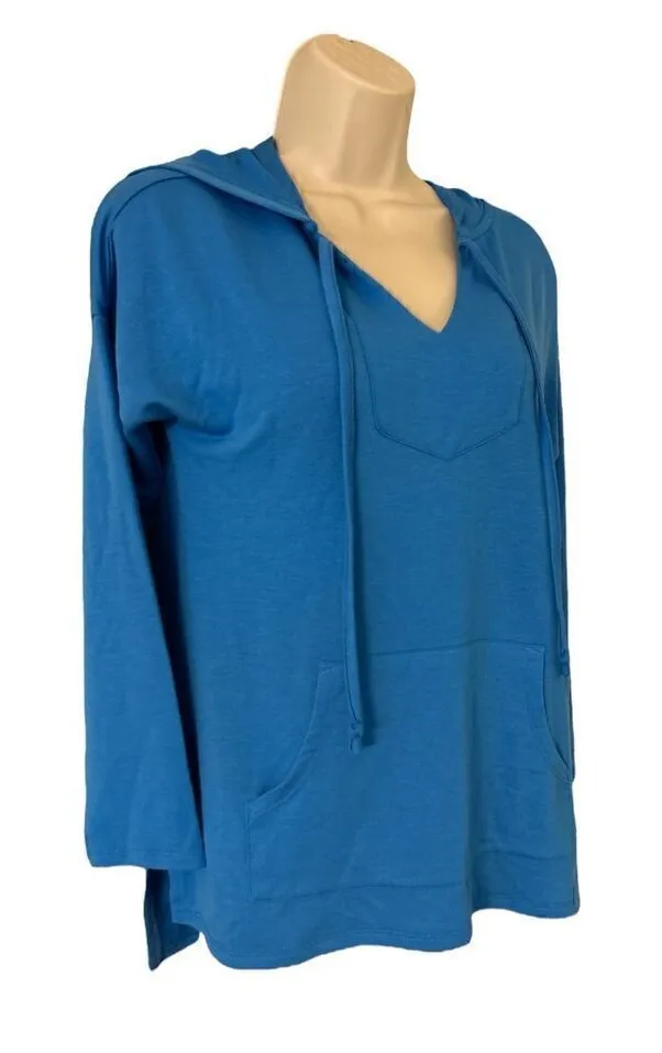 Soft Surroundings Womens Blue French Terry Hooded Tunic Top Sweatshirt Size PXS - $15 - From T