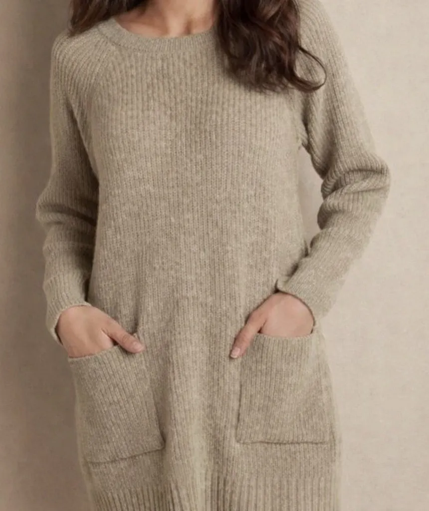 Soft Surroundings women's ribbed chenille tunic sweater in a neutral beige/tan shade. This cozy long sweater features a soft, plush chenille knit with vertical ribbing, a wide scoop neckline, raglan long sleeves, and two front patch pockets. The relaxed, slightly A-line silhouette makes it perfect for layering over leggings or slim pants for an effortlessly comfortable look. Originally there were faint light marks visible on the front in one mannequin photo from try-on; these were deodorant marks only and have been removed. No stains remain. Fabric is soft, stretchy, and comfortable with a substantial yet drapey feel. Size Medium. Please refer to photos for measurements. Details Brand: Soft Surroundings Size: Women's Medium Color: Beige / Tan / Oatmeal Material: 100% Polyester (chenille knit) Style: Tunic sweater, long sweater Features: Ribbed texture, front patch pockets, scoop neckline, long sleeves Care: Machine wash cold, gentle cycle Ships within 24 hours Keywords soft surroundings sweater soft surroundings tunic chenille sweater ribbed knit tunic womens long sweater cozy neutral sweater beige tan oatmeal sweater relaxed fit tunic long sleeve sweater pocket sweater minimalist casual lounge wear capsule wardrobe elevated basics comfy chic sweater layering piece fall winter sweater soft knit womens medium