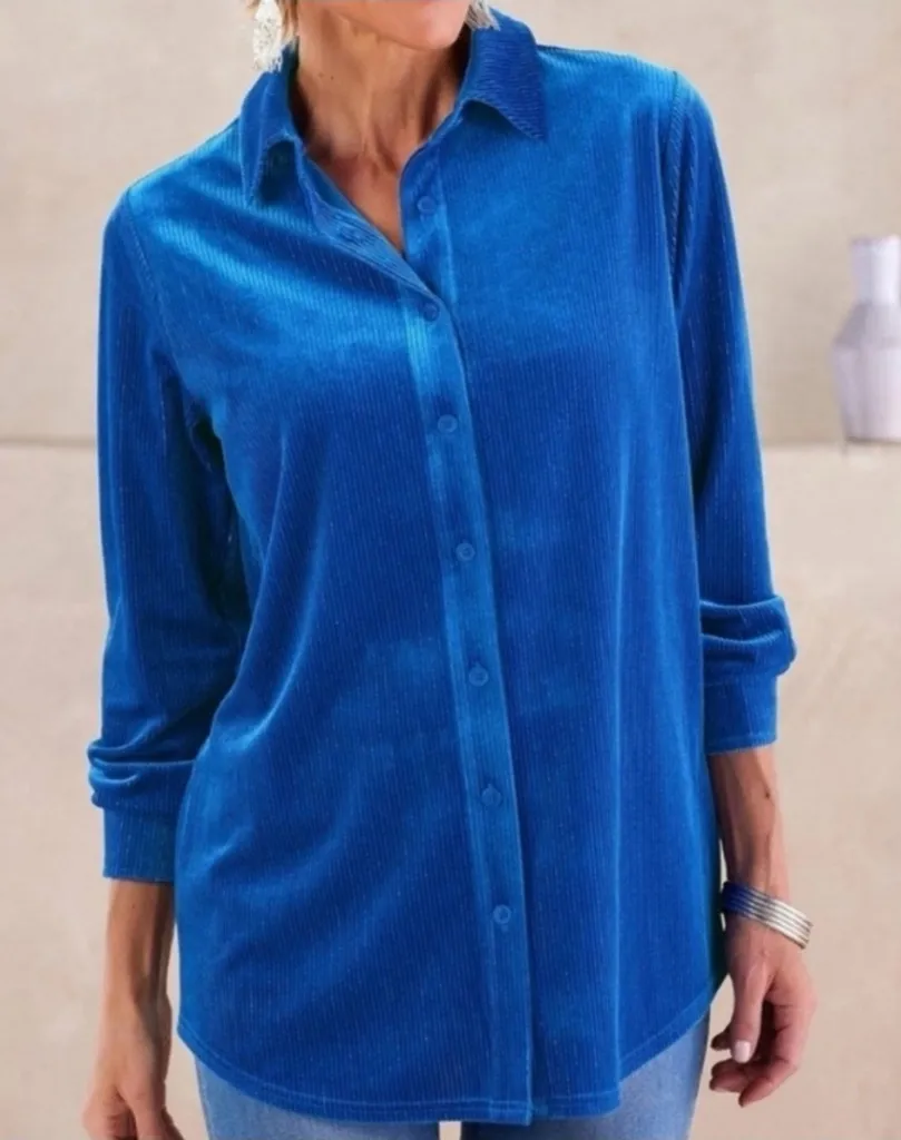 Soft Surroundings Women's Textured Velvet Boyfriend Shirt Sapphire Blue Size M Size M - $28 - From Brand