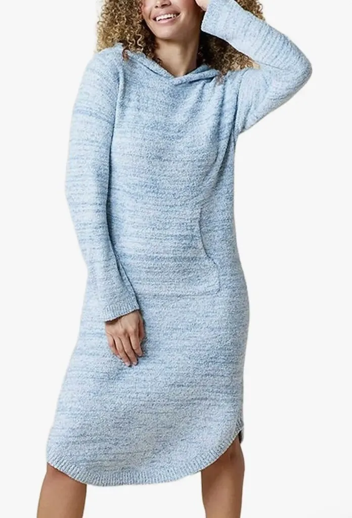 Softies Hooded Lounge Dress S/M Blue Cozy Long Sleeve Sleep Shirt Ultra-soft Softies hooded lounge dress designed for cozy comfort and everyday wear. Made from Softies’ signature plush knit fabric, this piece works beautifully as a sleep shirt, lounge dress, or relaxed at-home layer. Features a relaxed silhouette with long sleeves, a hooded neckline, and a longer length for comfort and coverage. Details: • Brand: Softies • Style: Hooded lounge dress / sleep shirt • Size: S/M (Small / Medium) — tagged size • Color: Soft heathered blue • Sleeve: Long sleeve • Neckline: Hooded • Fabric: Softies signature plush knit • Made in China Color Note (important): This item is blue in person. Due to indoor lighting, the color photographed lighter and may appear gray in some photos. Please refer to close-up images for the most accurate representation. Condition: • Good pre-owned condition • No holes or stains noted • Light wear consistent with gentle use • Please review all photos for texture and overall condition softies loungewear sleepwear cozy plush