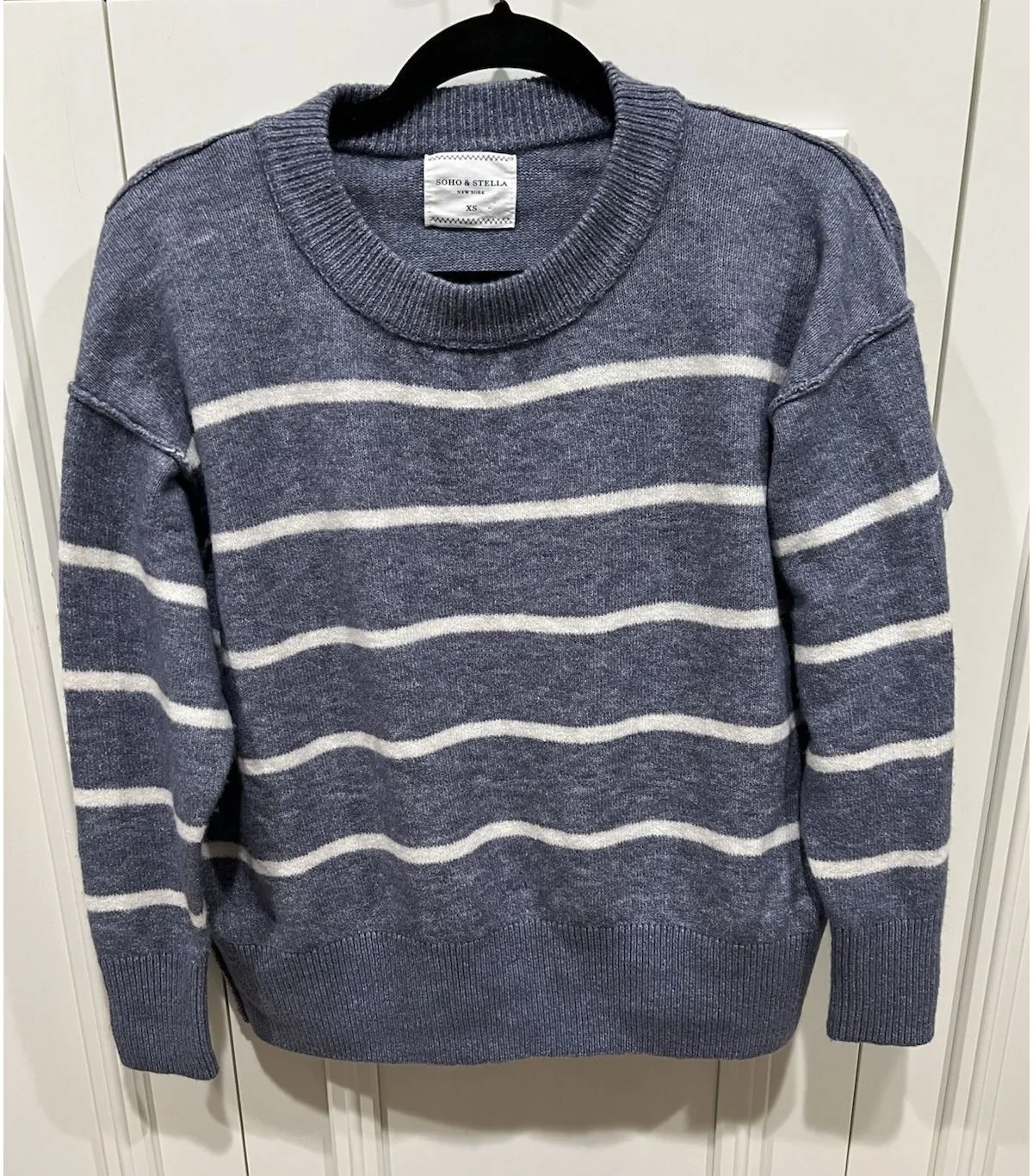 Soho & Stella Boxy Fit Sweater Size XS Blue & White Striped Wool Blend Nautical - $28 - From Jennifer