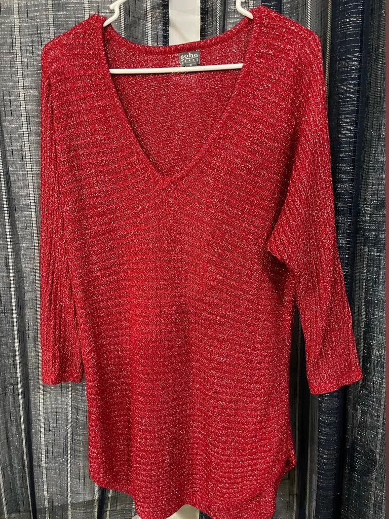 Soho JEANS NEW YORK & COMPANY Women Silver/RedPullover Sweater Size M Red Size M - $14 - From Laura