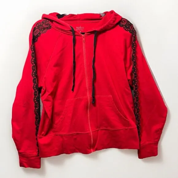 Soho Street New York Company Hoodie‎ Womens Medium Red Full Zip Lace Accent - $25 - From Christina