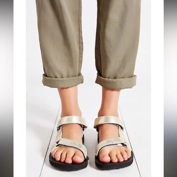 the ladies river shoe active sandals have all that style & sporty comfort for a cool low price. wear these sandals in the water or on dry land & be ready for summer adventures! features adjustable straps Great condition No flaws Size 6 Color gold black Measurements approx Please note that actual colors may vary slightly from what appears on your screen* * smoke & pet free *fast shipping 8z