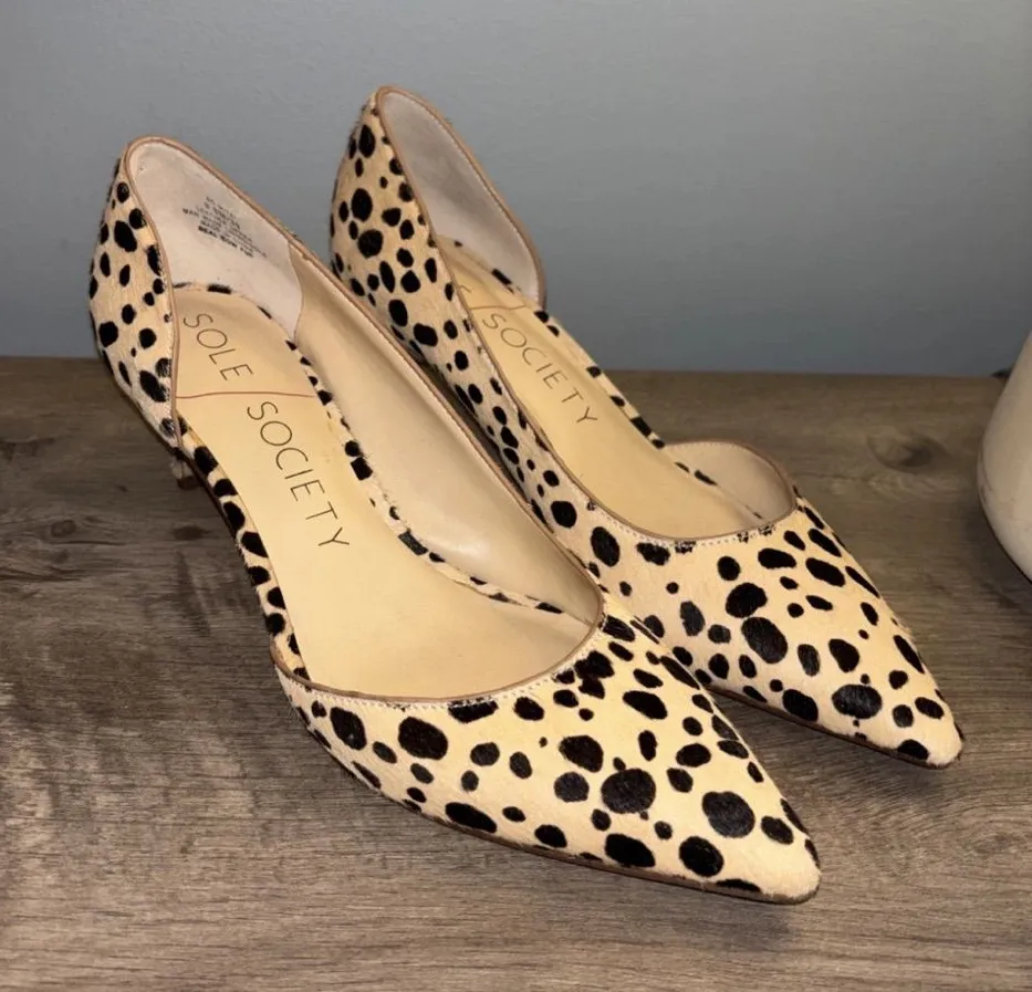 The Sole Society Women’s Calf Hair Animal Print Kitten Heel Pumps in size 8.5 are a stylish and tren... Show more
