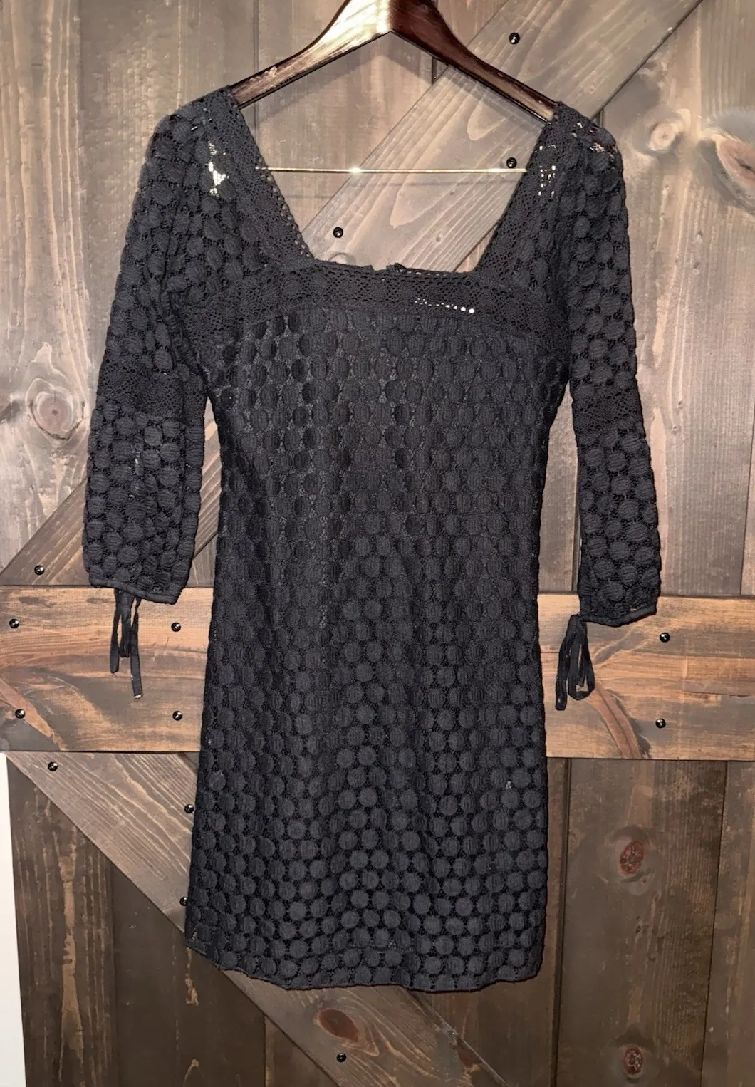 SOLITAIRE Ravi Khosla Black Boho‎ Eyelet LACE MINI DRESS Cover Up Size Small S - $20 - From Dana