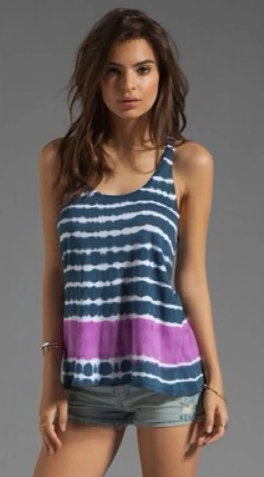 SOLOW Tie Dye Tank Top Summer Boho Hippie Coastal Nautical Casual Womens Size Small Color: Magenta/Navy/White Cinched racerback sleeveless tank top with back slit detail (currently tied and can be untied). Revolve brand. *Measurements taken laying flat and are approximate: Pit to pit: 14” Shoulder to hem: 23” No stains or holes. 50% Supima 50% Modal