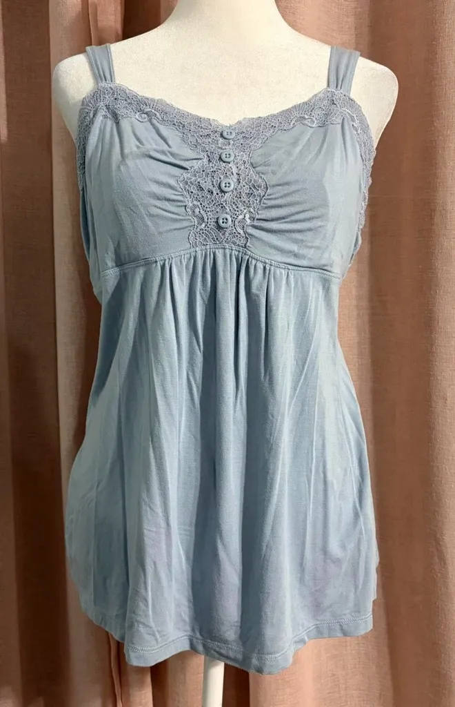 blue lace trim babydoll top tank top Size L - $21 - From Kelly