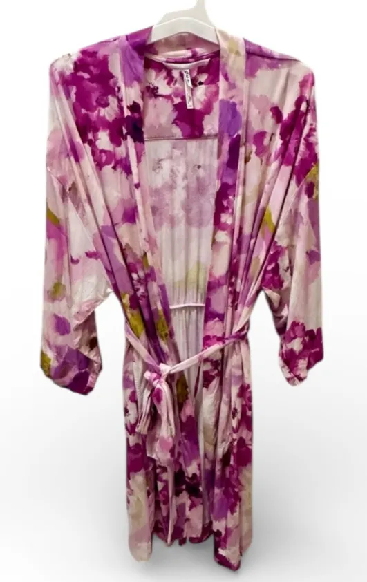 Soma COOL NIGHTS Kimono Short tie up soft Robe Size L/XL floral pink white Purple - $30 - From Melissa