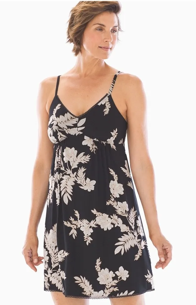 Soma cool nights pom trim sleep chemise isle palm black nightgown - $27 - From E
