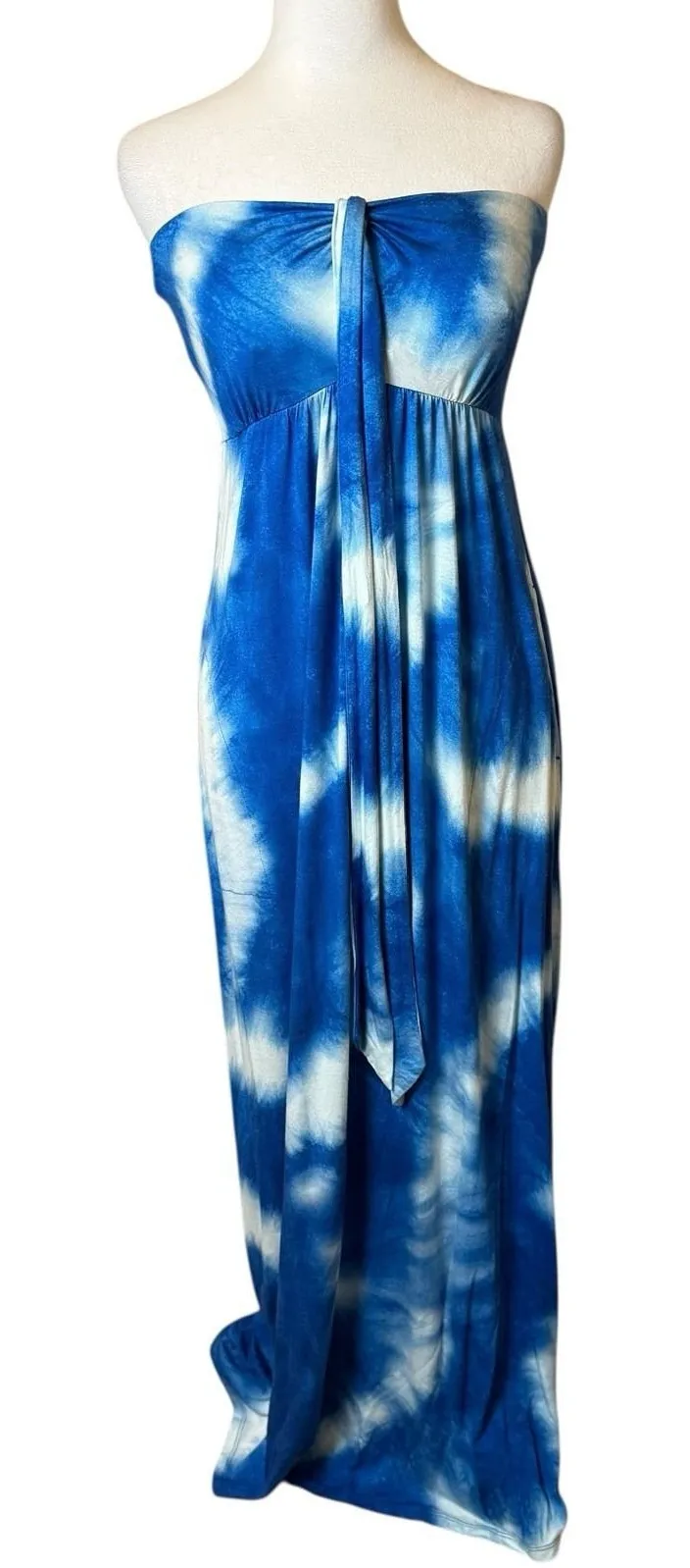 Excellent Pre-Owned Condition (see pics for details) Features: •Style Profile: Soma Halter Maxi Bra Dress Blue White Tie Dye Medium Vacation Beach Cruise Vacay •Flaws: Has a slight stain as seen in last photo, not noticeable when worn. •Please see photos for measurements (in inches) laying flat- Pit to Pit: 15" Waist: 13.5" Top to hem: 49.5" •Washing Instructions: Machine Wash Size: Medium Color: Blue Tags: Tie dye, Boho, Hippie, Beach, Vacation, Spring Break, Vacay, Cruise, Bohemian Smoke free home. I am happy to answer your questions and am open to reasonable offers! Super fast shipping: I ship out the next business day! Please note that all pre-owned items may have slight imperfections.