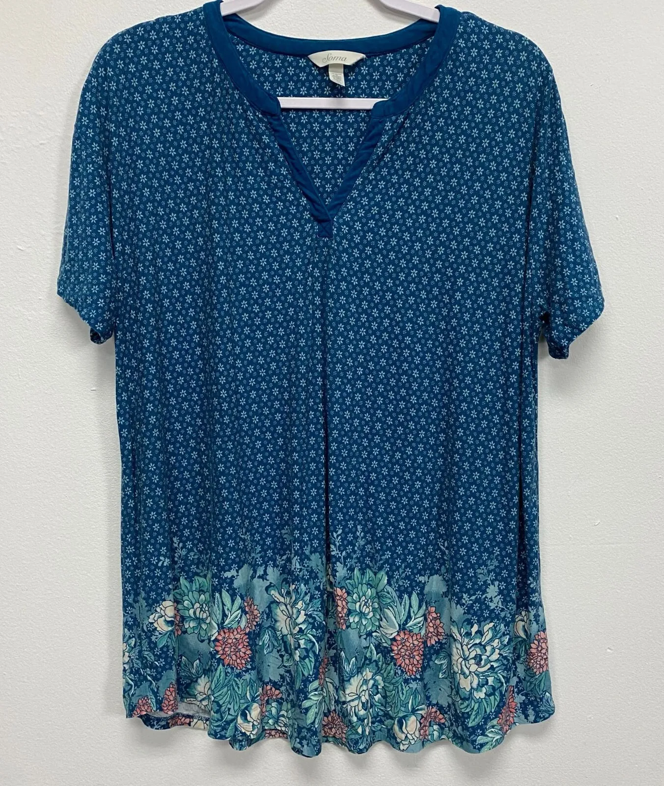 Elevate your wardrobe with this stunning Soma blouse. Featuring a beautiful floral pattern in shades of blue, this v-neck top is perfect for any occasion. The cap sleeves and lightweight material make it comfortable and easy to wear, while the stylish design adds a touch of sophistication. Made from 93% rayon and 7% spandex, this blouse is a must-have for any fashion-forward woman. The size is Large and is perfect for regular size types and is sure to be a favorite in your collection. Don't miss out on the opportunity to add this stylish piece to your wardrobe today!