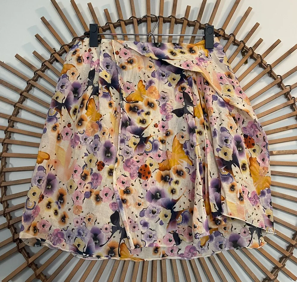 Gorgeous and unique skirt from Sonia Rykel. Layered and draped mini skirt, silk cotton blend, fully lined. Zips in the back. Beautiful butterfly and floral print design with the cutest ladybugs 🐞 too! Giving ethereal, garden girl, fairy vibes! 🧚 Size FR 38 ➡️ US 6 or 8 - please see measurements 👇 EUC Waist: Length: Garden girl, garden print, ethereal, layered, gathered, silk blend, French fashion, Sonia Rykel, mini skirt, unique, ladybug, butterfly, colorful; lightweight, mini, designer, luxury fairy, fairycore, spring,