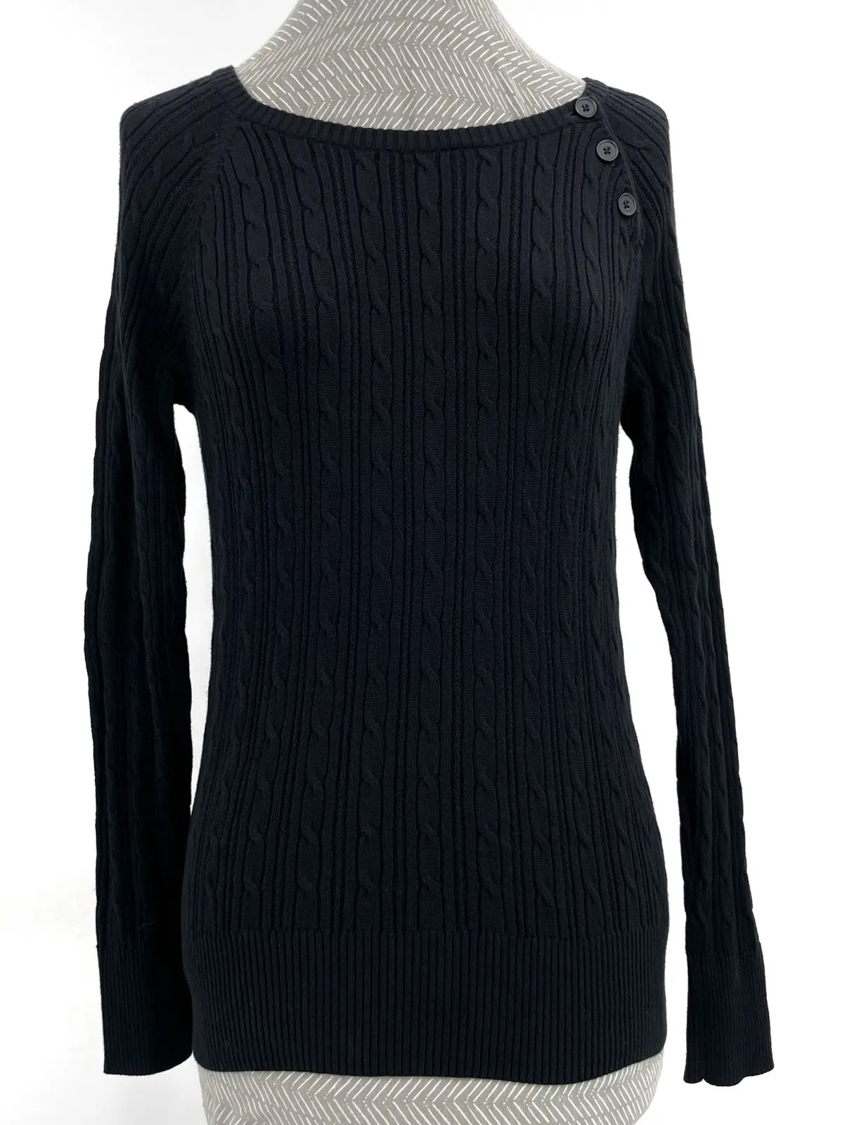 This classic black cable knit sweater is so easy to wear! Perfect for business, Corpcore career work... Show more