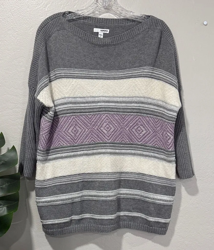Size S Color Grey, Cream, Purple Excellent condition - one pull at back shown Chic and comfortable... Show more