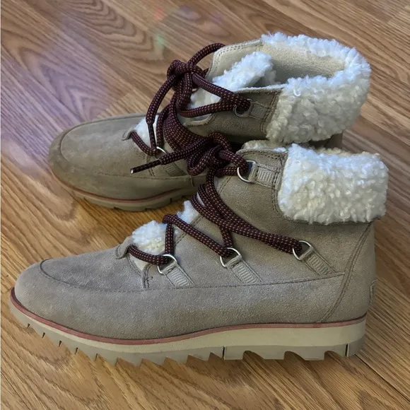 In excellent pre owned conditions No flaws Sorel Harlow lace cozy casual lace up ankle boots Waterp... Show more