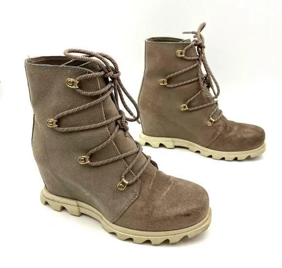 Sorel Joan of Arctic Wedge III Lace Boot Suede Ankle Bootie Gray Waterproof Size 8 Preowned item in... Show more