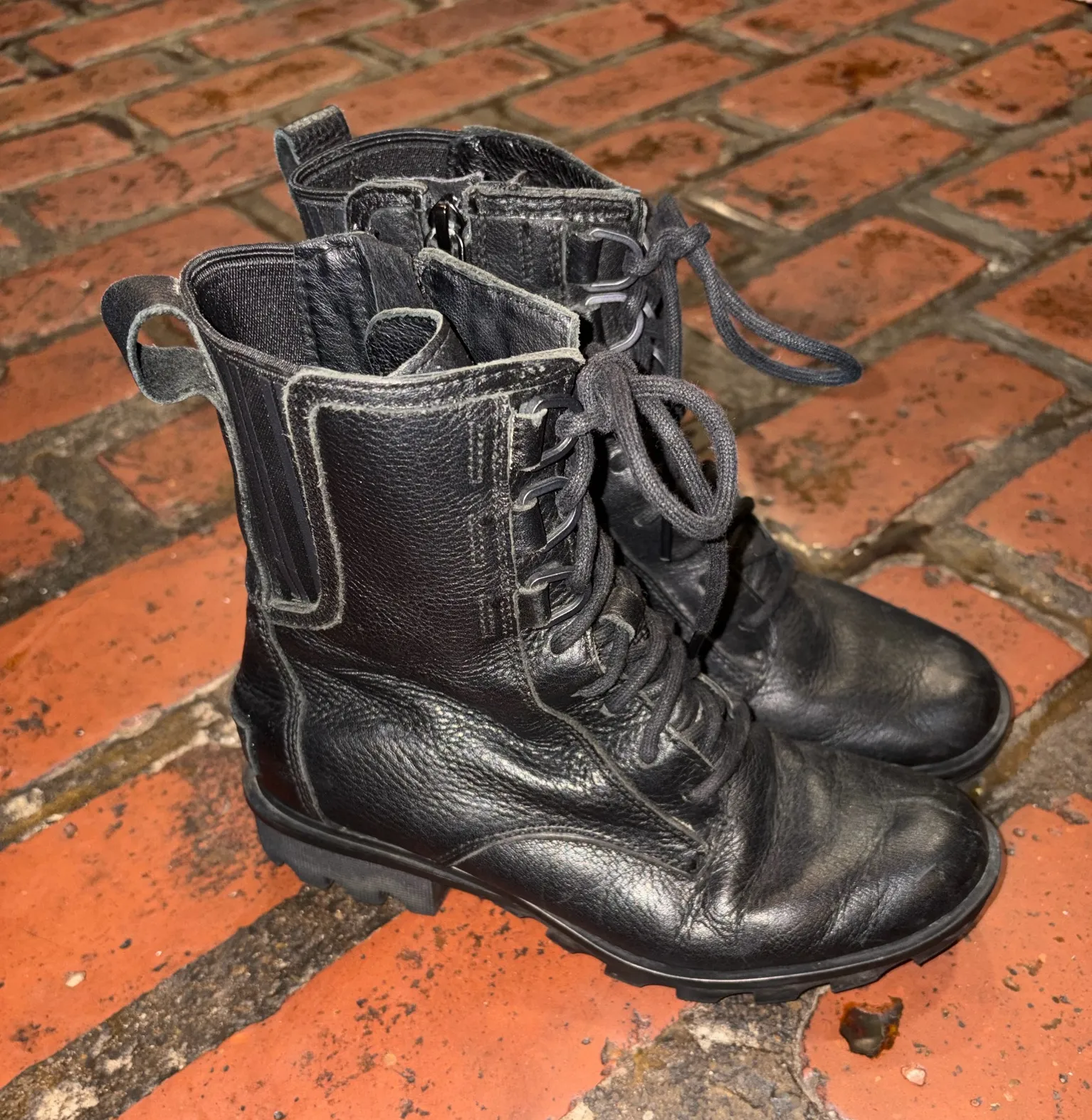 SOREL Phoenix Lace Leather Black Biker Waterproof Combat Boots Women's Sz 6.5 - $53 - From Chelsea