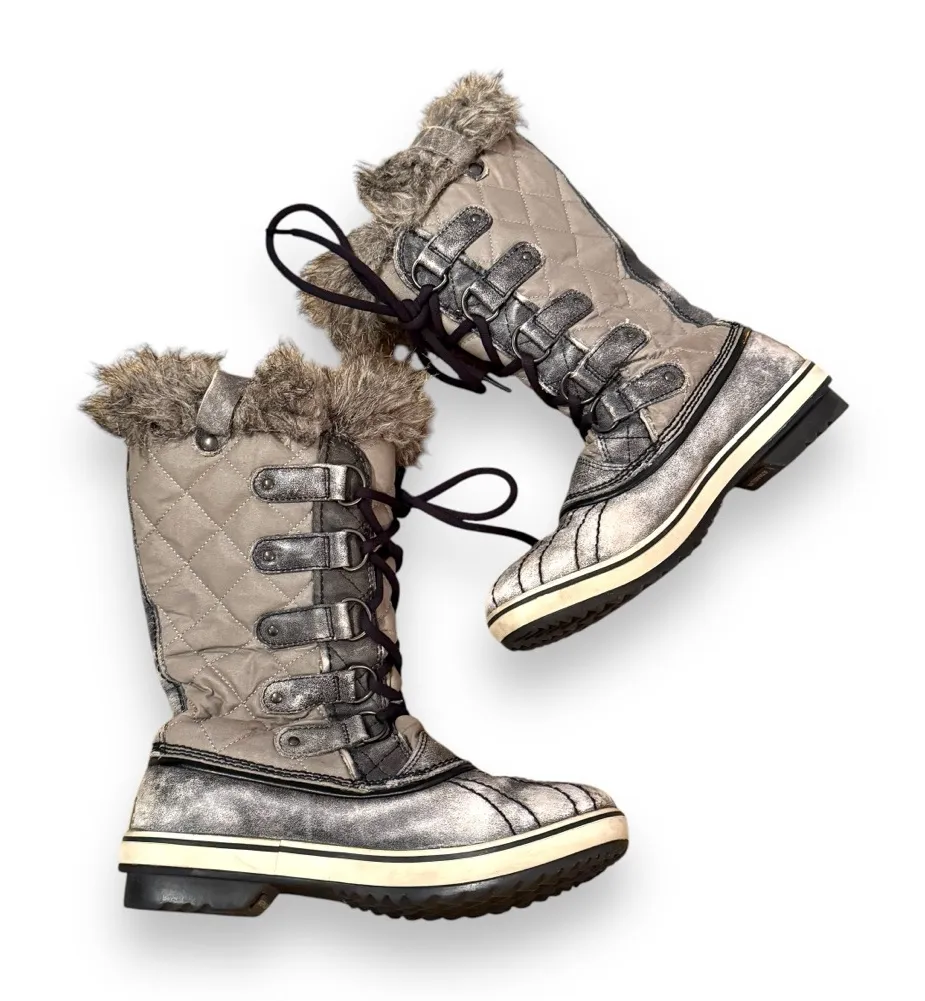 Sorel Tofino Tall Gray Waterproof Lace Up Distressed Faux Fur Snow Boots Designed for ultimate func... Show more