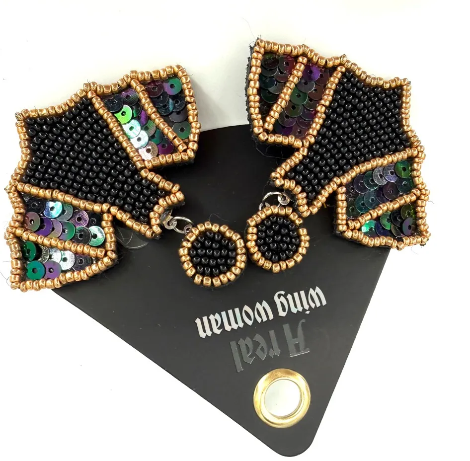 Soul Stacks “ A Real Wing Woman” Black and Gold Beaded Bat Wing Earrings - $11 New With Tags - From Cristina
