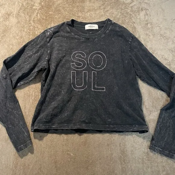 SoulCycle Shirt Womens Medium Acid Wash Black Gray Cropped Long Sleeve Tshirt - $23 - From T