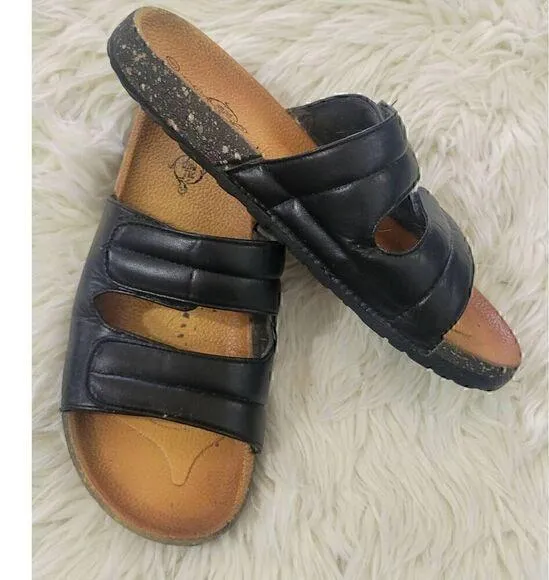 Solemates Sz 9 Slide On Double Padded Straps Sandals in Black Tan Tan - $12 - From Jennifer